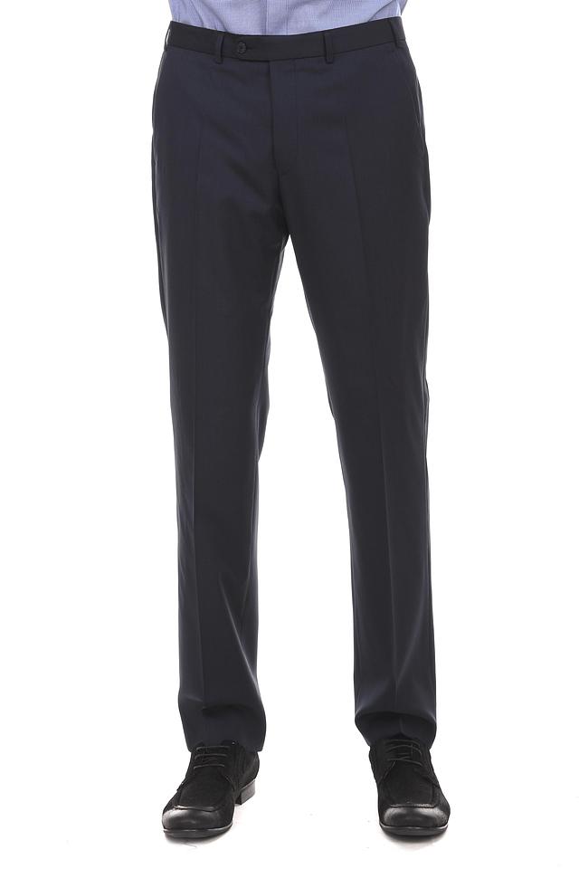 Брюки имеют тёмно-синий цвет, прямой крой и стандартную посадку. Они идеально подходят для создания делового или повседневного образа. Застежка на молнию и пуговицу, а также наличие классических карманов делают брюки практичными и функциональными.