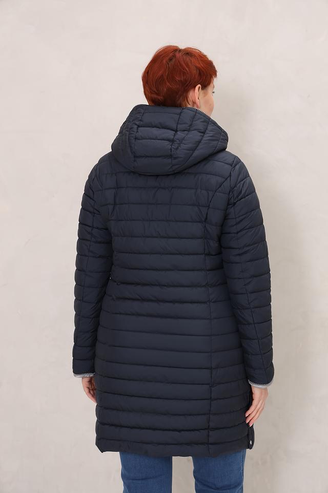 Стеганое пальто District тёмно-синего цвета – это практичная и стильная верхняя одежда для прохладной погоды. Модель выполнена из 100% полиэстера, имеет удобный капюшон и функциональные карманы. Состав: полиэстер 100%