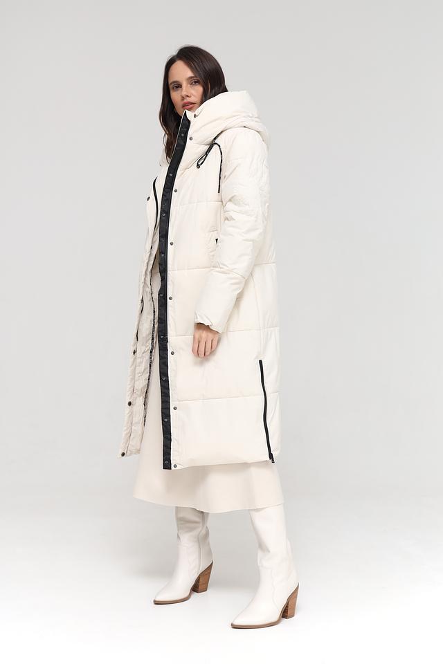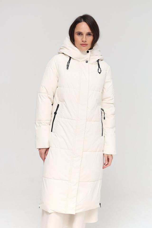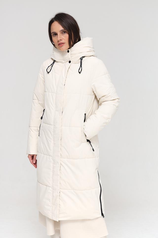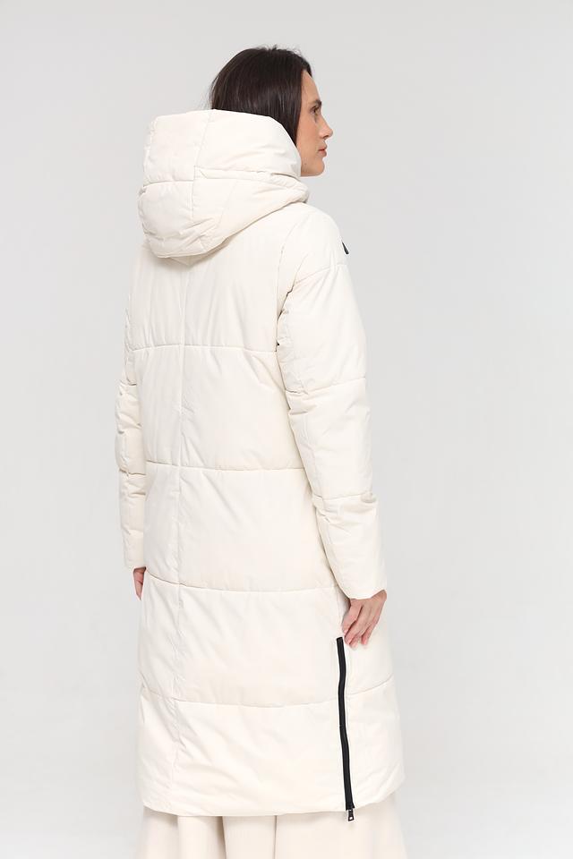 Модель отличается удобным кроем, не сковывающим движения. Пальто застегивается на молнию, имеет высокий воротник-стойку и капюшон, защищающие от ветра и холода. Боковые карманы на молнии позволяют безопасно хранить необходимые вещи.
