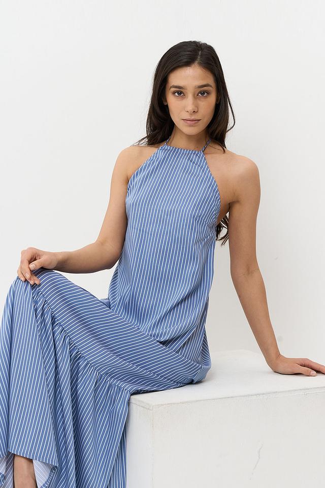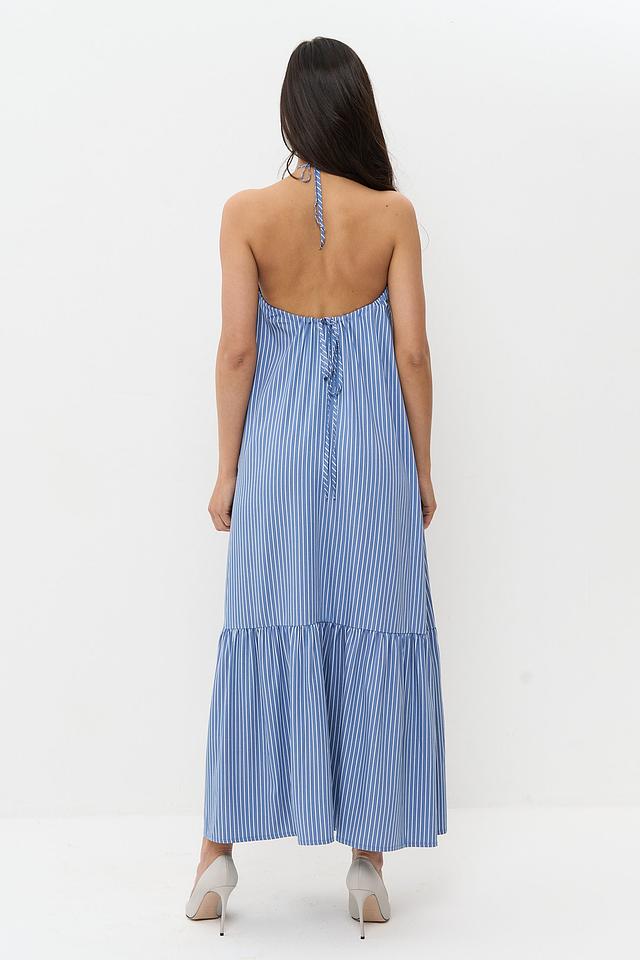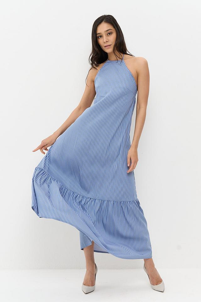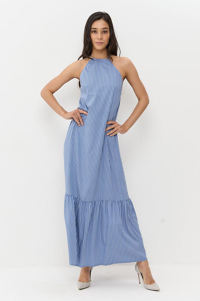 Длинное платье от BE YOU станет прекрасным дополнением к летнему гардеробу. Модель выполнена в голубую полоску, что придает ей свежесть и легкость.