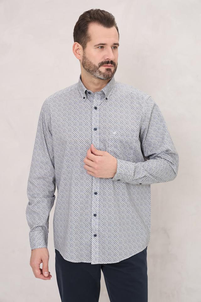 Стильная мужская рубашка Casa Moda серого цвета с оригинальным геометрическим принтом. Изготовлена из 100% хлопка, обеспечивающего комфорт и воздухопроницаемость. Идеальный выбор для создания повседневного образа. Состав: хлопок 100%