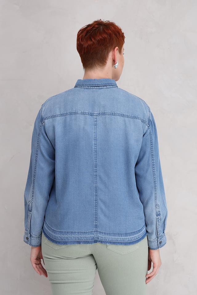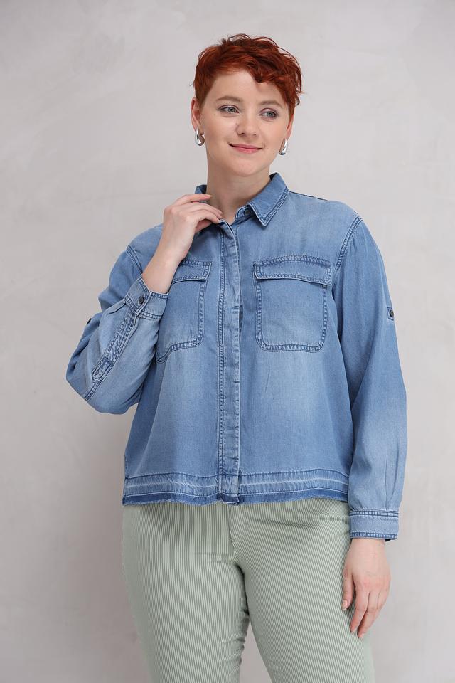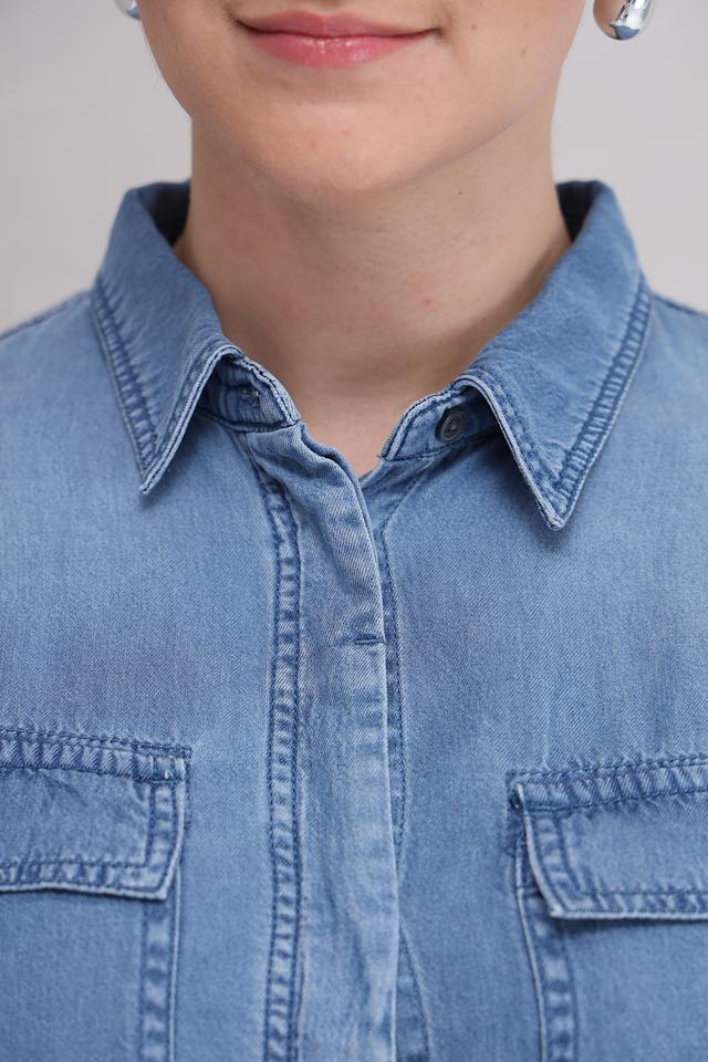 Эта рубашка от Lecomte выполнена из высококачественного лиоцела, что обеспечивает мягкость, комфорт и отличную воздухопроницаемость. Цвет рубашки – голубой, напоминающий выцветший деним, что придает ей винтажный вид.