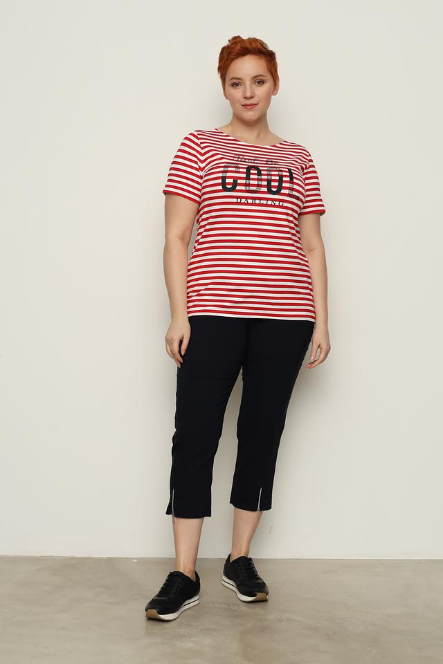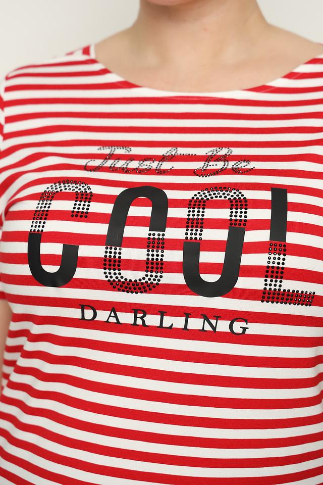 Женская футболка Doris Streich красного цвета в белую полоску с ярким принтом "You Darling". Модель выполнена из мягкой вискозы с добавлением эластана, обеспечивающего комфортную посадку. Состав: вискоза 92%, эластан 8%