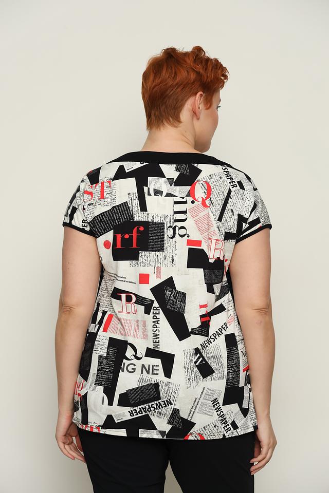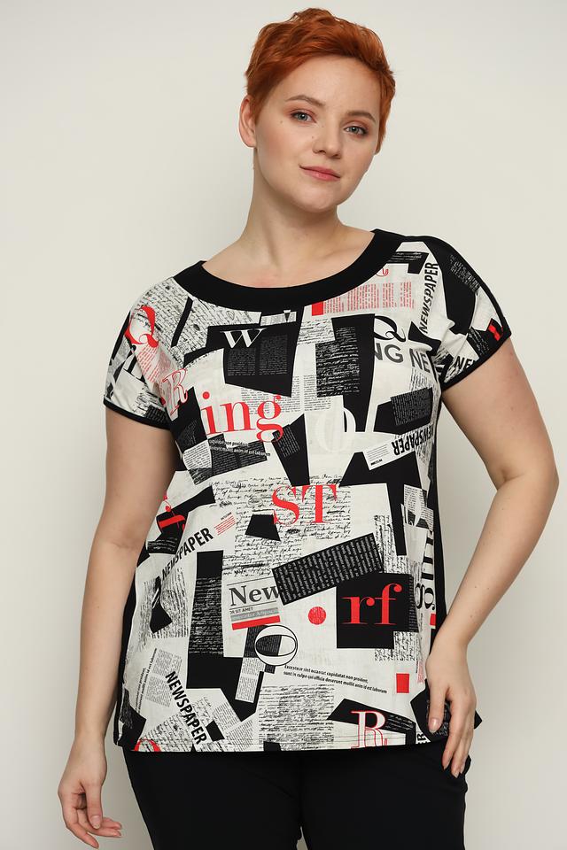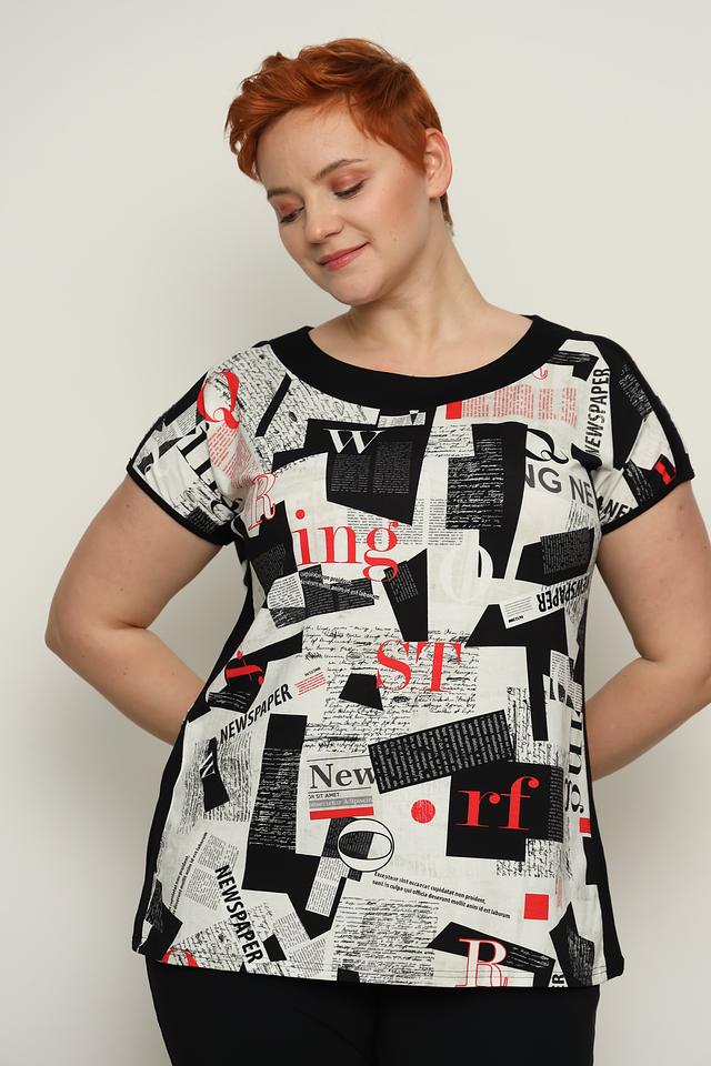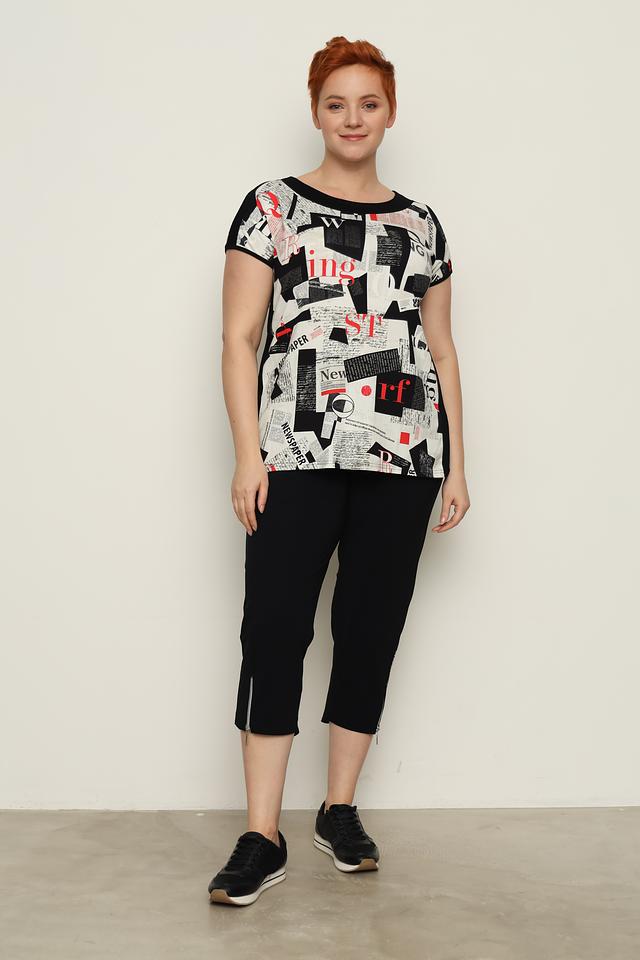 Женская футболка Doris Streich чёрно-белого цвета с оригинальным принтом в виде газетных вырезок. Модель свободного кроя из мягкой вискозы обеспечит комфорт в течение дня. Состав: вискоза 94%, эластан 6%