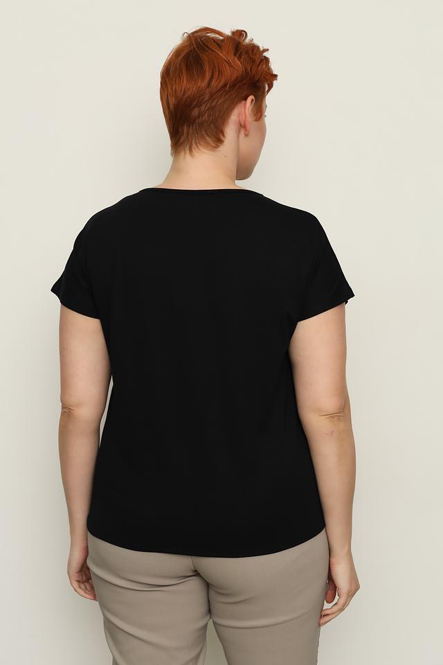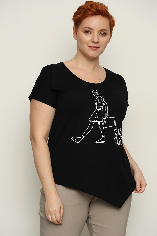 Чёрная блуза от Doris Streich с оригинальным принтом в виде девушки с собачкой. Изготовлена из мягкой вискозы с добавлением эластана для комфорта и хорошей посадки. Стильный и удобный вариант для повседневного образа. Состав: вискоза 96%, эластан 4%