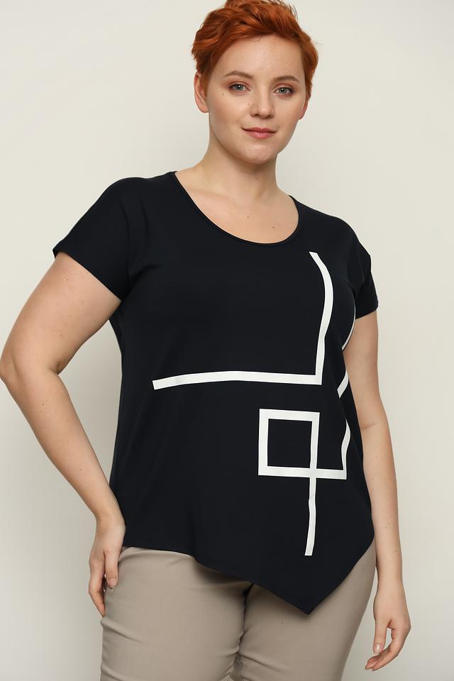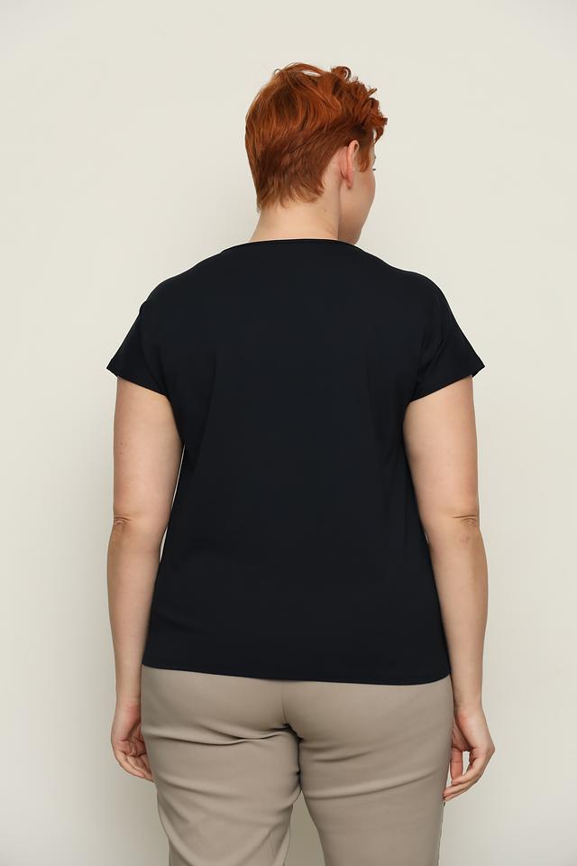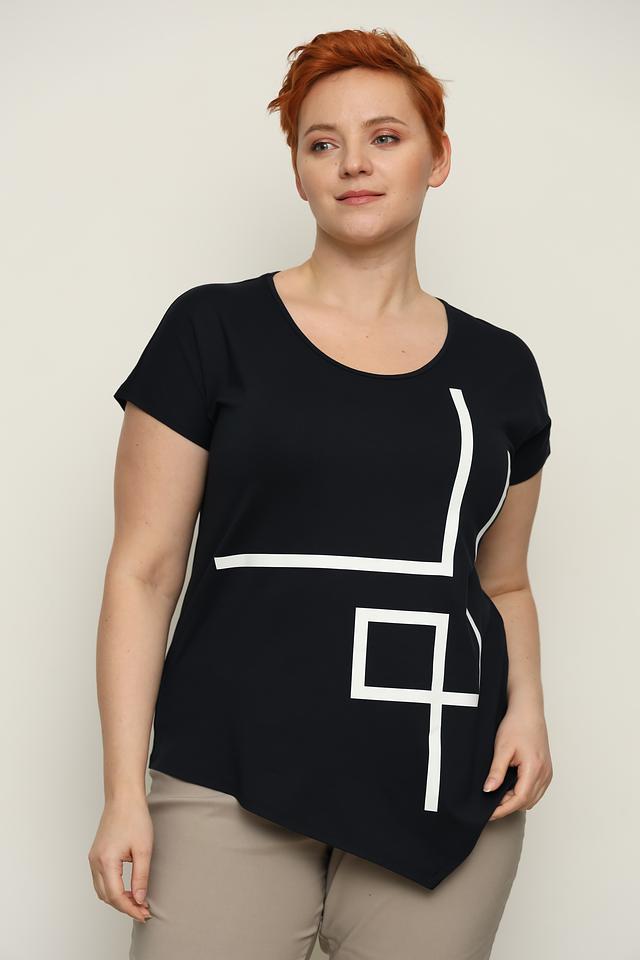 Чёрная блуза от Doris Streich с короткими рукавами и оригинальным белым принтом. Изготовлена из мягкой вискозы с добавлением эластана для комфорта и хорошей посадки. Состав: вискоза 96%, эластан 4%