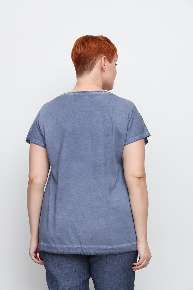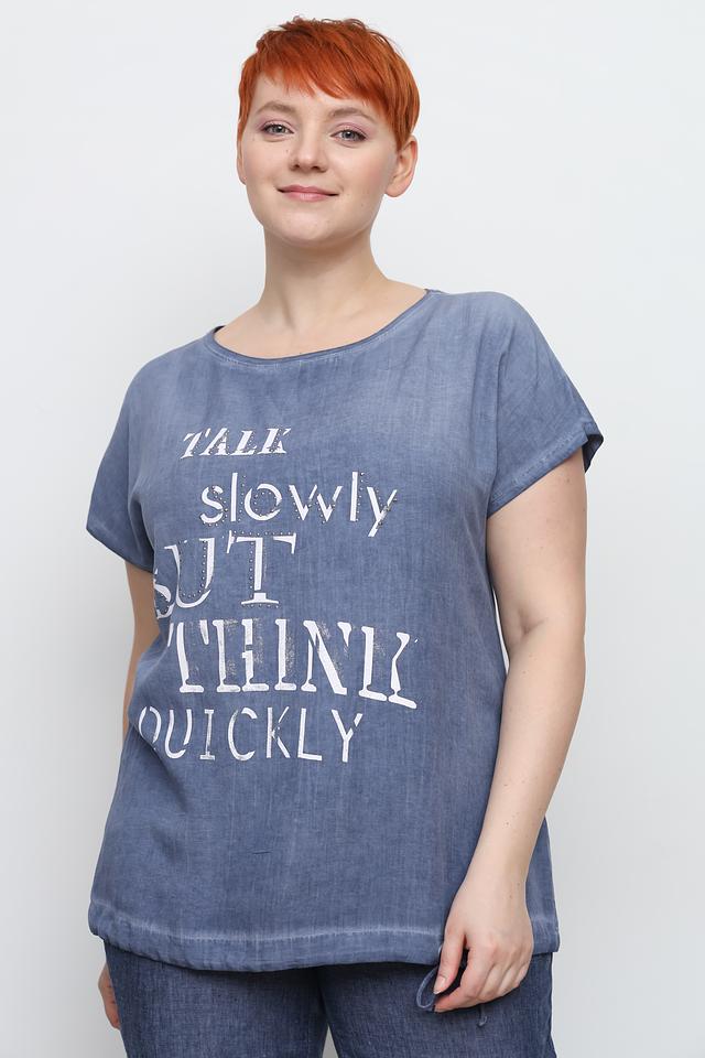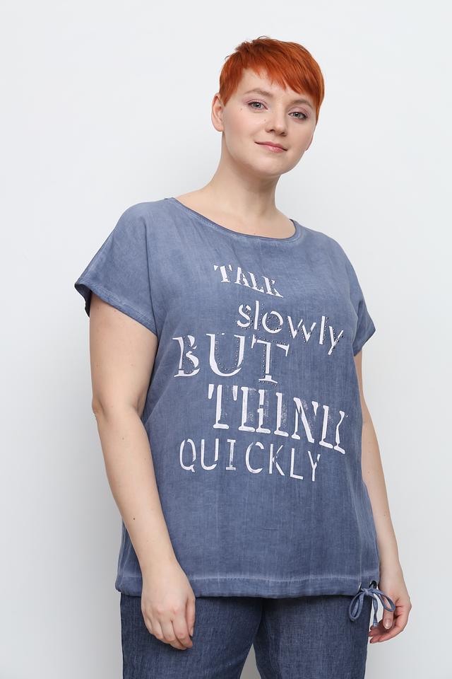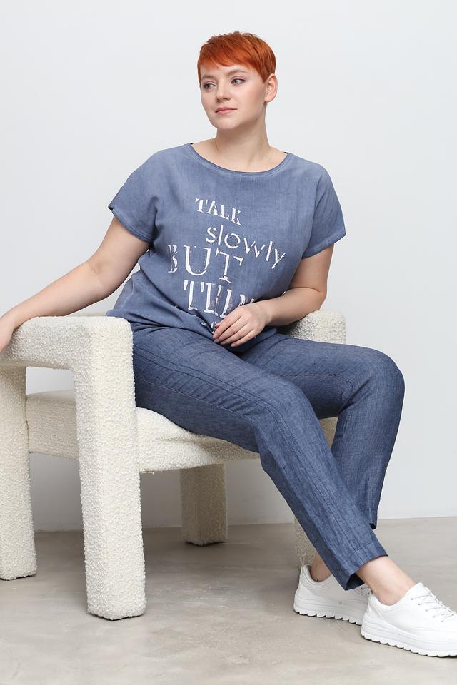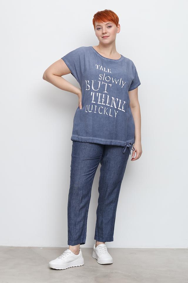 Голубая футболка от Doris Streich с оригинальным принтом и свободным кроем. Изготовлена из мягкой вискозы с добавлением льна, обеспечивающей комфорт и воздухопроницаемость. Идеальный выбор для создания повседневных образов. Состав: вискоза 75%, лен 25%