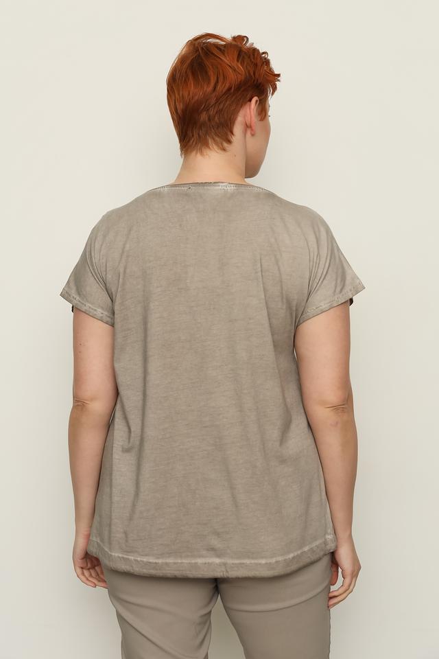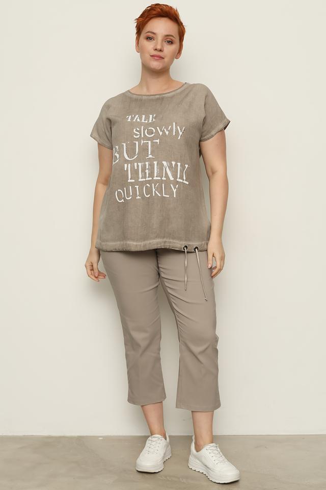 Серая блуза от Doris Streich с оригинальным принтом и короткими рукавами. Изготовлена из мягкой и приятной к телу ткани на основе вискозы и льна, обеспечивающей комфорт в жаркую погоду. Состав: вискоза 75%, лен 25%