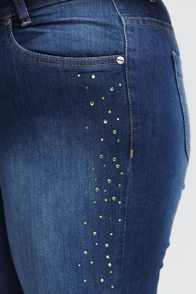 Представляем вашему вниманию стильные джинсы от бренда Doris Streich. Эта модель выполнена в классическом синем цвете и отличается оригинальным дизайном благодаря декоративной отделке из страз, расположенных на одной штанине.