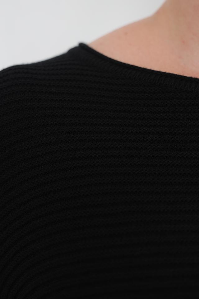 Текстура вязки придает изделию объём и визуальный интерес. Этот пуловер идеально сочетается с брюками, джинсами или юбками, создавая стильный и современный образ. Он подойдет для повседневной носки и особых случаев.