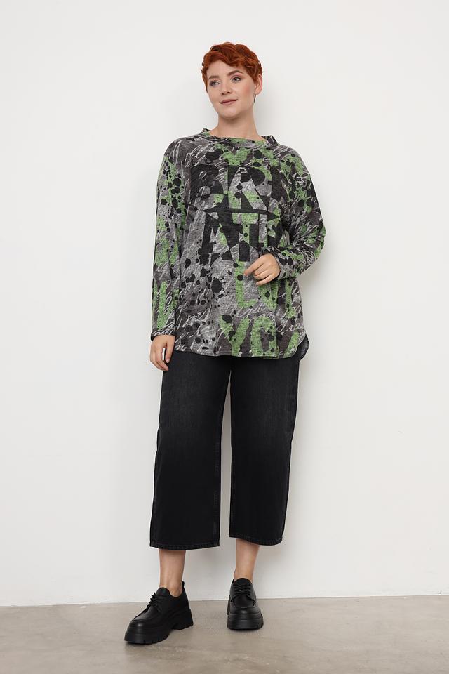 Этот стильный пуловер от бренда Doris Streich станет отличным дополнением к вашему образу. Пуловер выполнен в зеленой цветовой гамме с ярким абстрактным принтом, который придает ему индивидуальность.