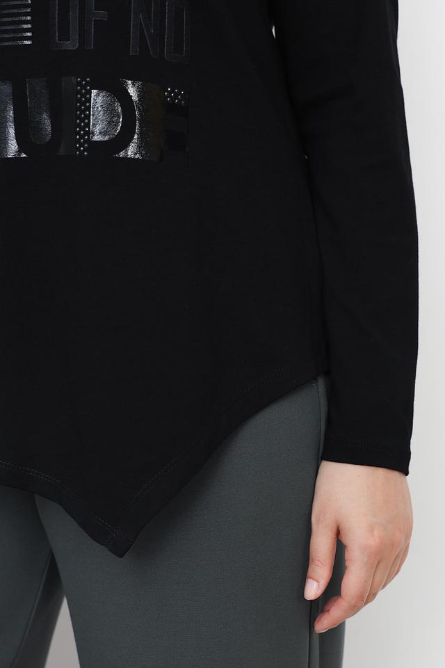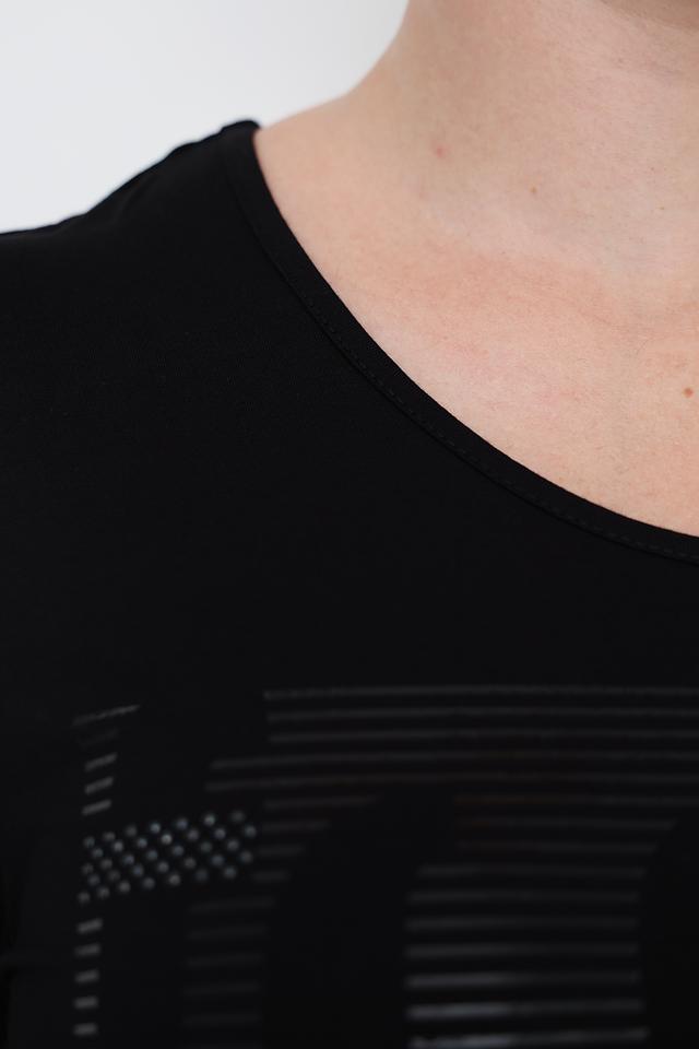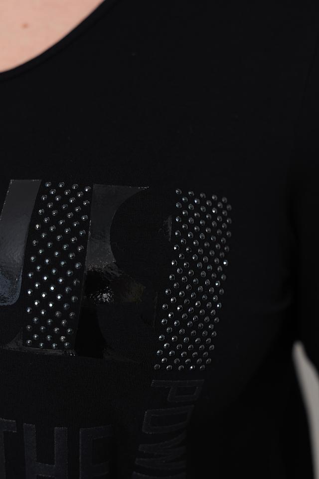 Чёрный лонгслив от Doris Streich с оригинальным принтом на лицевой стороне. Изготовлен из мягкой вискозы с добавлением эластана для комфорта и хорошей посадки. Состав: вискоза 96%, эластан 4%