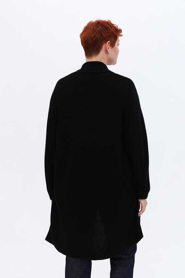 Кардиган имеет прямой крой и длину до середины икры, что делает его универсальным для женщин разного роста и комплекции. Отсутствие застежек обеспечивает максимальный комфорт в носке, а мягкий трикотаж приятен к телу.