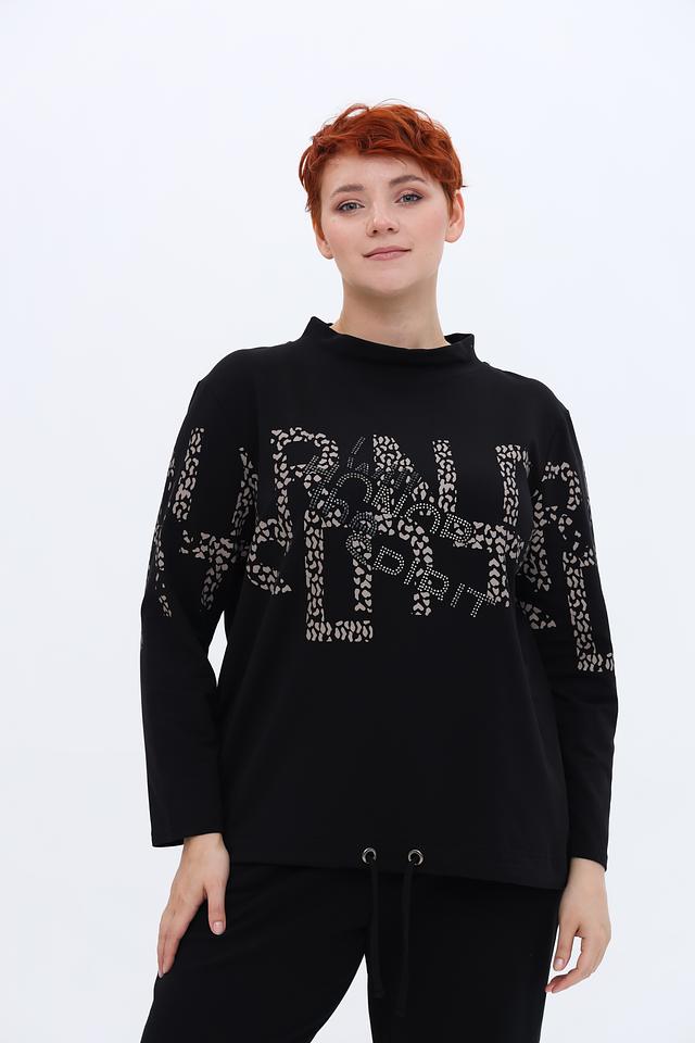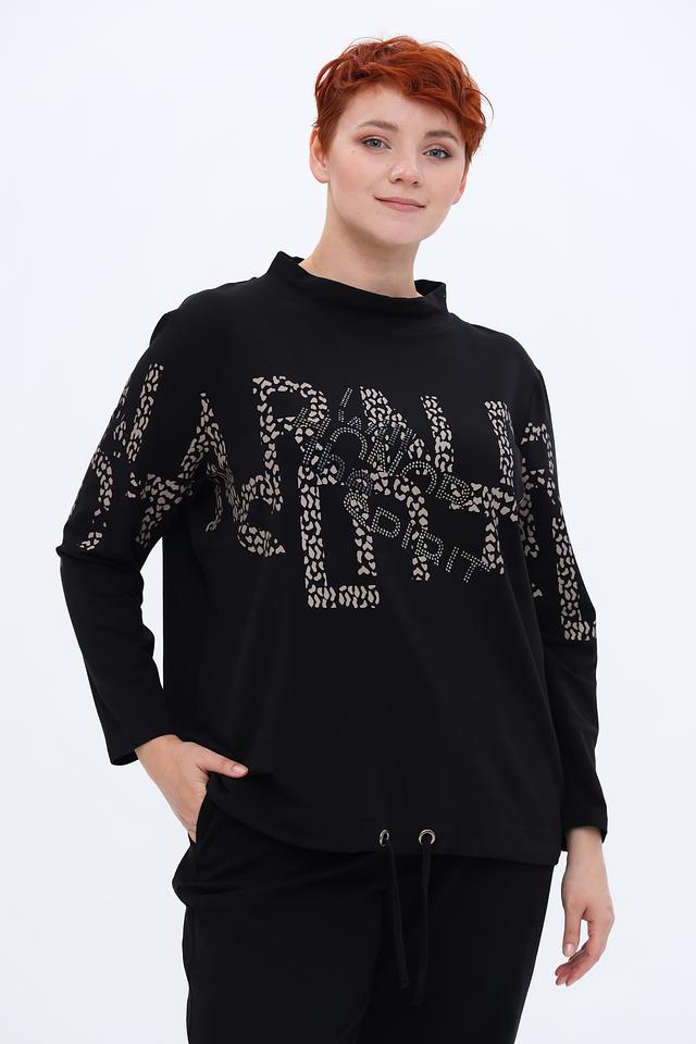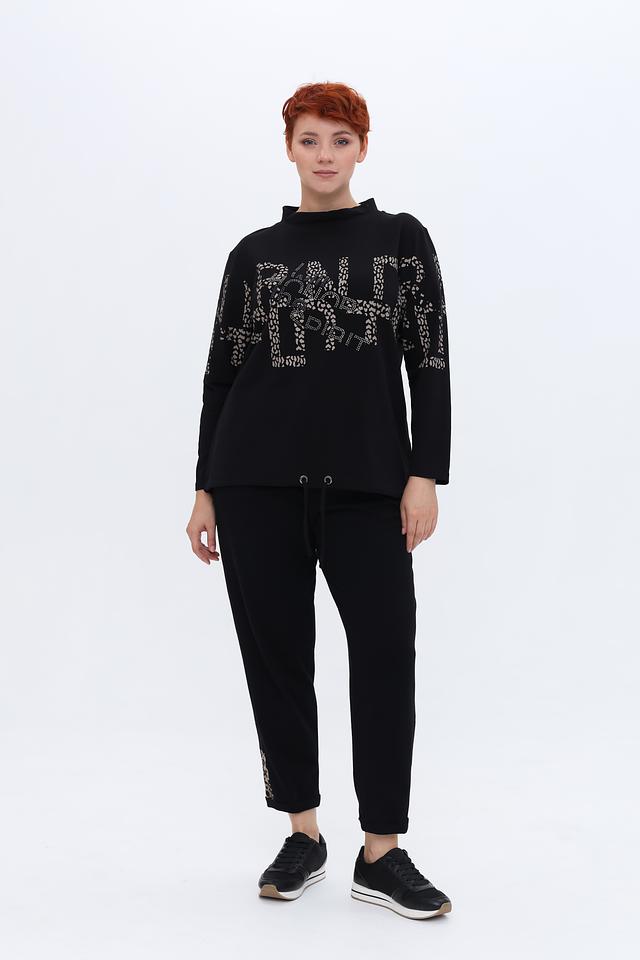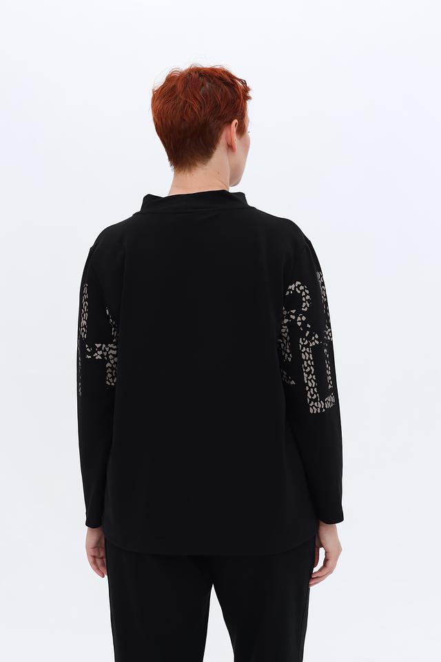 Чёрный пуловер от Doris Streich с оригинальным леопардовым принтом. Модель выполнена из мягкого трикотажа с добавлением хлопка, модала и эластана, обеспечивающего комфортную посадку. Удобный крой и стильный дизайн. Состав: хлопок 47%, модал 47%, эластан 6%