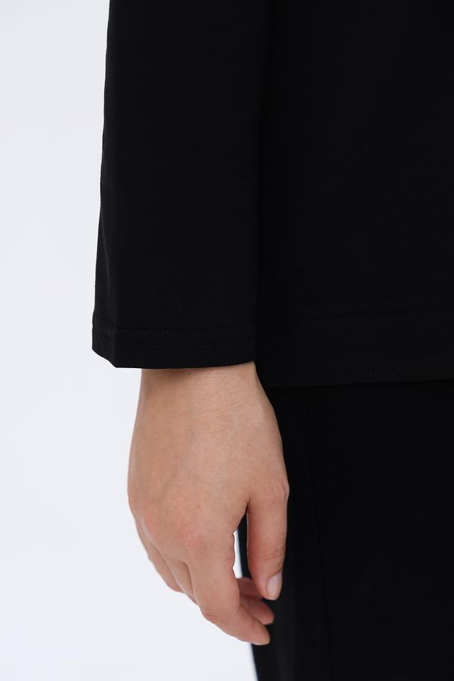 Модель имеет удобный крой с округлой горловиной и длинными рукавами. По низу изделия предусмотрена кулиска с декоративными шнурками, позволяющая регулировать силуэт. Пуловер изготовлен из высококачественного трикотажа, в состав которого входит 47% хлопок, 47% модал и 6% эластан. Такое сочетание материалов обеспечивает комфорт в носке, мягкость и приятные тактильные ощущения.