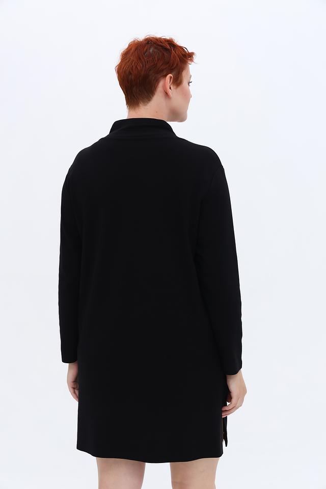 Модель имеет прямой силуэт, удобную длину до колена и рукава три четверти. Платье изготовлено из высококачественного трикотажа, в составе которого хлопок, модал и эластан, что обеспечивает комфорт и свободу движений.