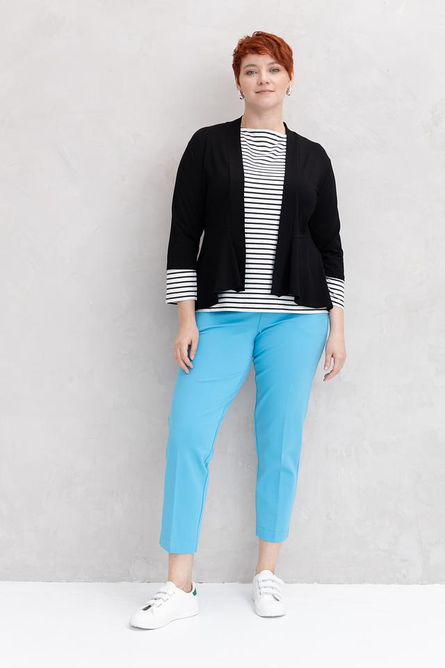 Жакет имеет удобный свободный крой, который не сковывает движения и обеспечивает комфорт в течение всего дня. Рукава 3/4 делают его идеальным для тёплой погоды или для создания многослойных образов.