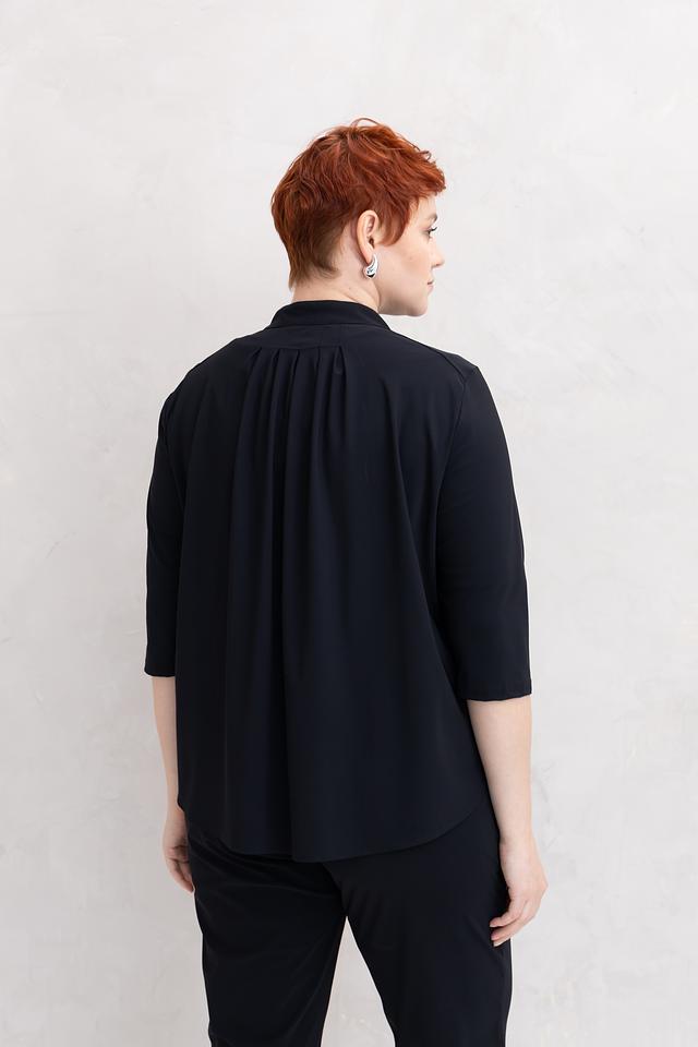 Жакет имеет приталенный силуэт, который подчеркивает фигуру. Застежка на молнии обеспечивает удобство и практичность. Рукав 3/4 делает этот жакет идеальным для теплой погоды или для создания многослойных образов.