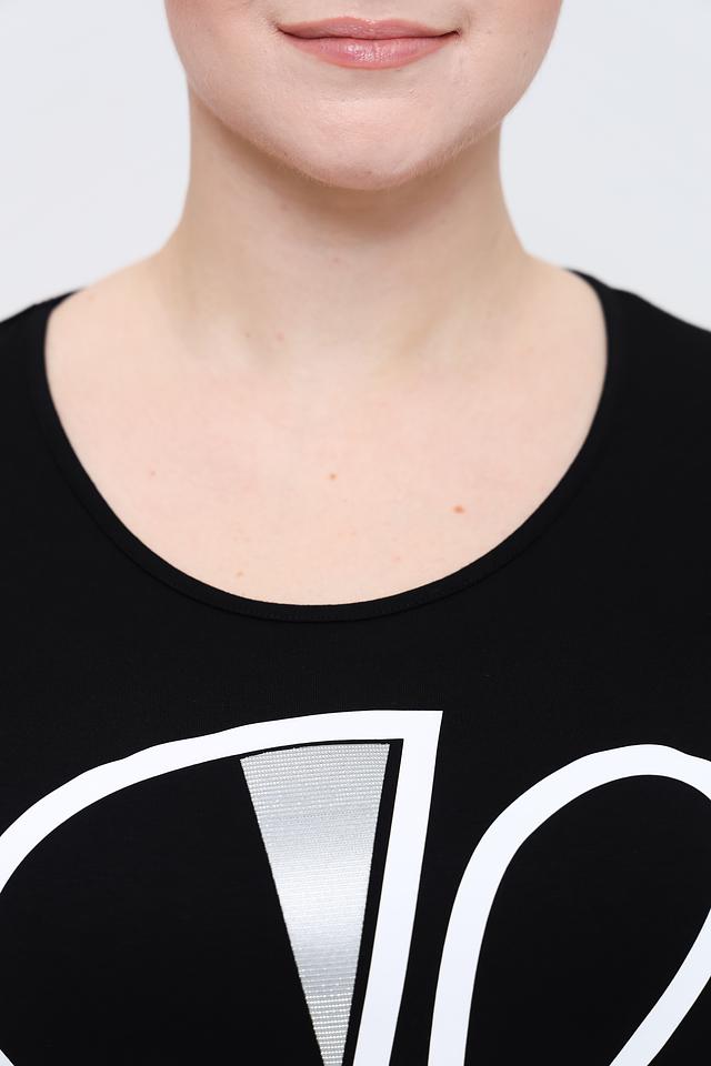 Чёрная футболка от Doris Streich с оригинальным белым принтом – стильное и комфортное решение для повседневного образа. Изготовлена из мягкой вискозы с добавлением эластана, обеспечивающего удобную посадку. Состав: вискоза 96%, эластан 4%