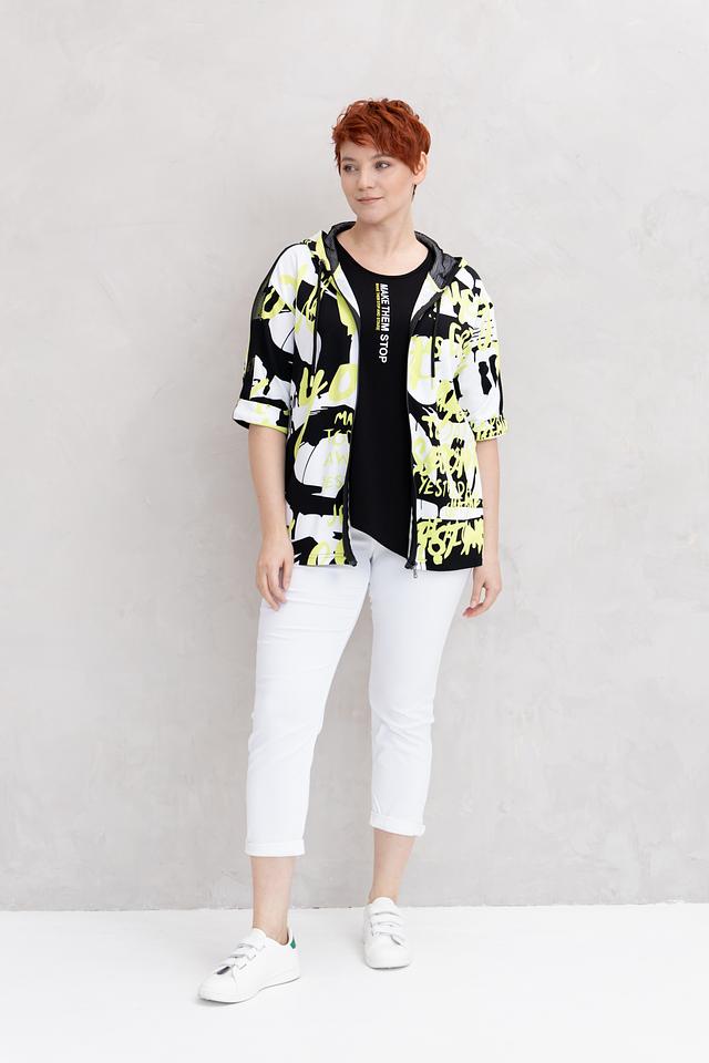 Этот стильный жакет от бренда Doris Streich станет ярким акцентом в вашем гардеробе. Жакет выполнен в чёрном цвете и украшен эффектным графичным принтом, сочетающим в себе элементы жёлтого и белого цветов.