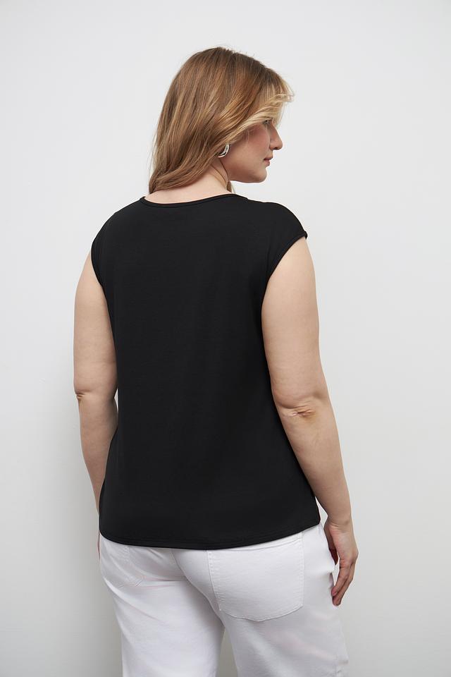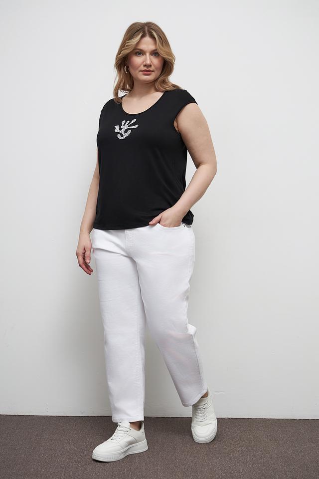 Чёрный топ от Doris Streich с оригинальной вышивкой — стильное и комфортное решение для повседневного гардероба. Изготовлен из мягкой вискозы с добавлением эластана, обеспечивающего удобную посадку. Состав: вискоза 94%, эластан 6%