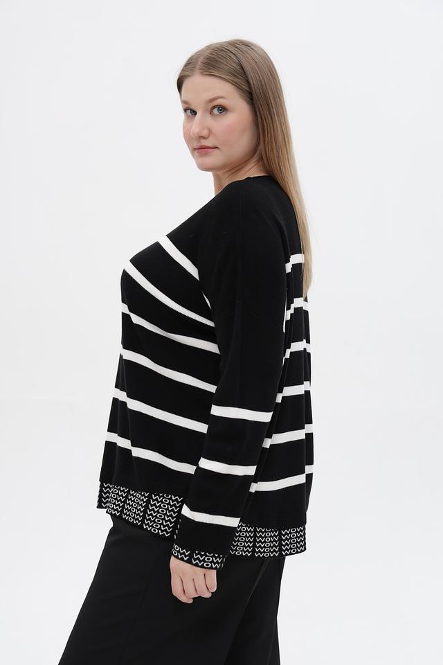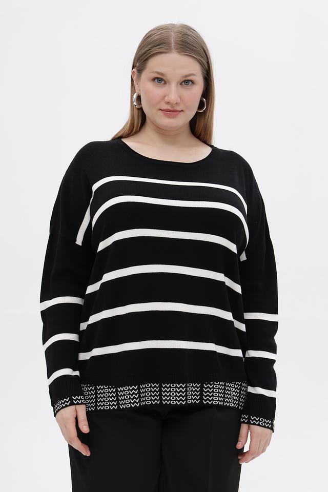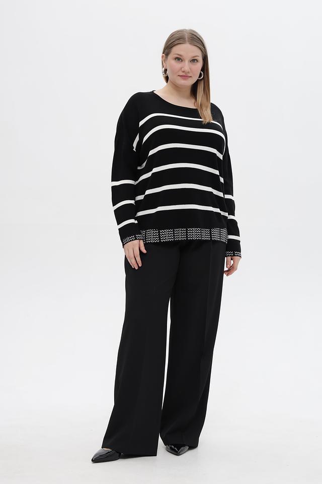 Стильный пуловер от бренда Doris Streich в классическую чёрно-белую полоску. Изготовлен из мягкого сочетания вискозы и полиакрила, обеспечивающего комфорт и удобство в носке. Состав: вискоза 50%, полиакрил 50%