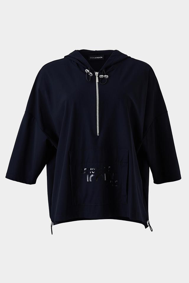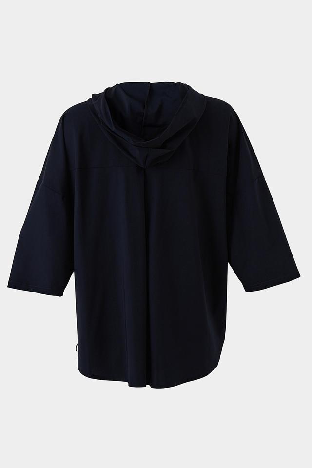 Чёрная блуза с капюшоном от Doris Streich – стильная и удобная модель свободного кроя с короткими рукавами. Изготовлена из высококачественного полиамида с добавлением эластана, обеспечивающего комфорт в носке. Состав: полиамид 75%, эластан 25%