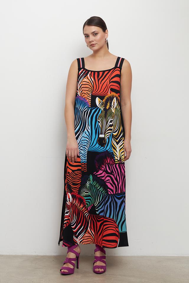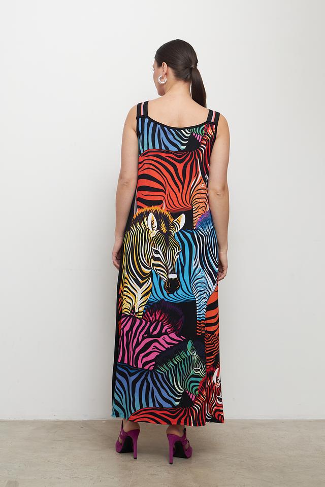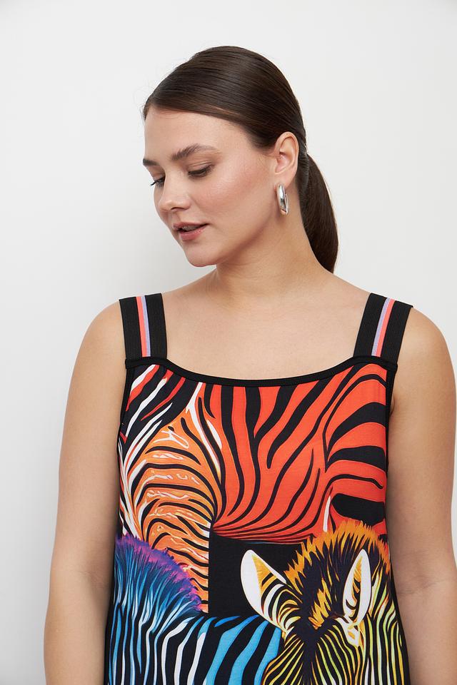Платье от Doris Streich яркого расцветки с принтом зебра станет эффектным дополнением вашего гардероба. Модель выполнена из мягкой вискозы с добавлением эластана, обеспечивающего комфорт при носке. Платье имеет длину миди и тонкие бретели. Состав: вискоза 93%, эластан 7%