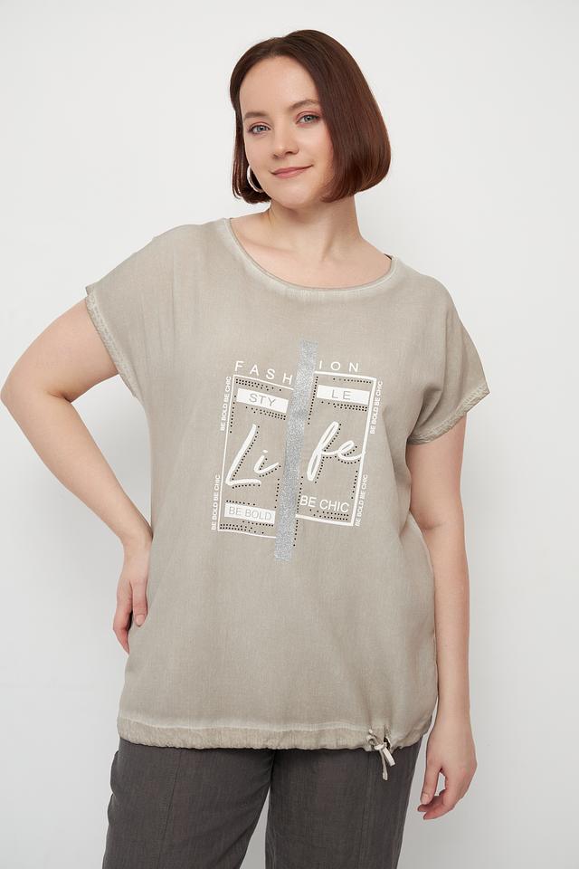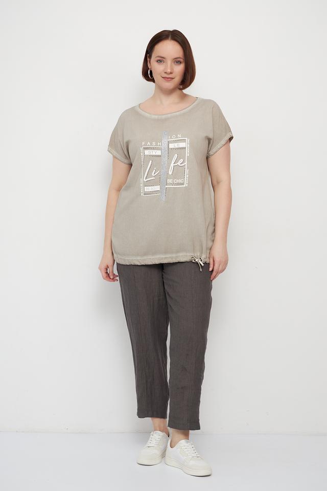Бежевая футболка от Doris Streich с оригинальным принтом "Life" станет отличным дополнением к вашему гардеробу. Модель свободного кроя из приятной вискозы и льна обеспечит комфорт в течение дня. Состав: вискоза 75%, лен 25%