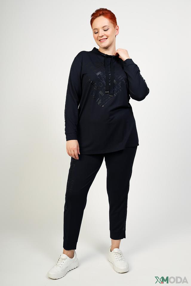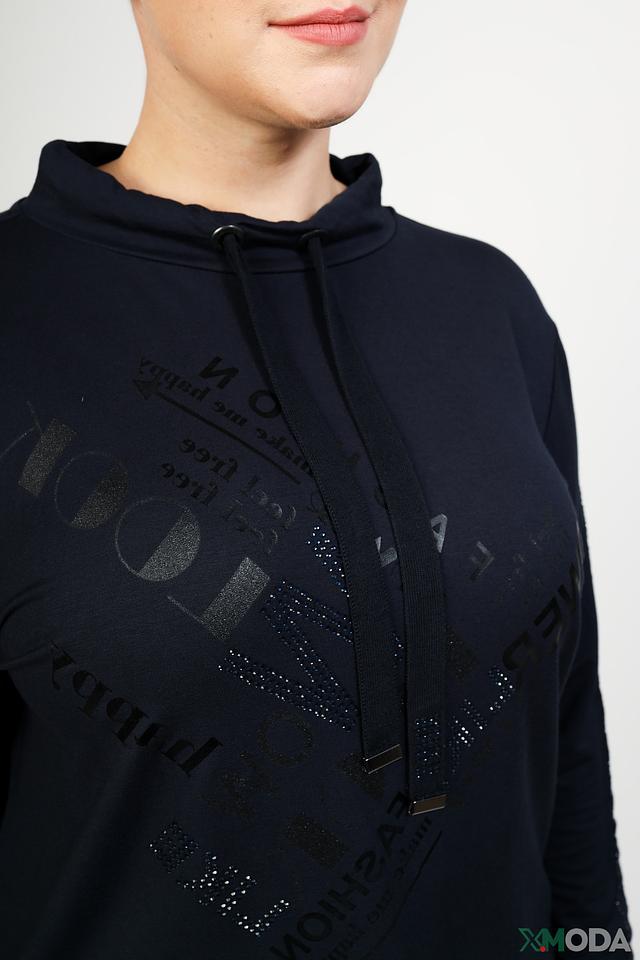 Модель украшена принтом и декоративными элементами из страз, которые придают ей особый шарм. Пуловер имеет удобный крой, который не сковывает движений, и капюшон с кулиской.