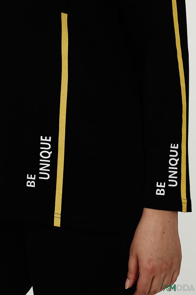 Жакет имеет удобный капюшон и застёгивается на молнию. Оригинальный дизайн подчёркивают золотистые полосы на рукавах и надпись "BE UNIQUE", добавляющие образу индивидуальность.