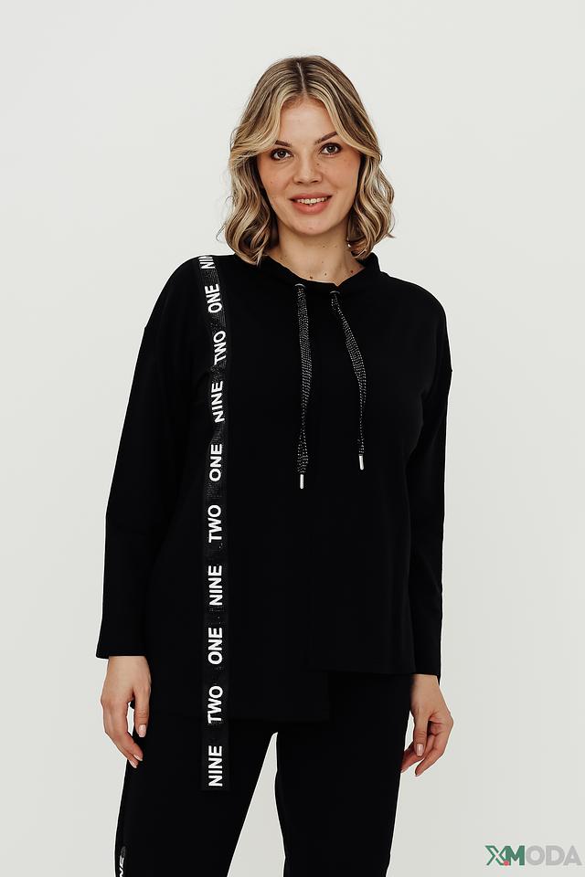 Чёрный пуловер от Doris Streich – это стильная и удобная модель с капюшоном и декоративными полосками. Изготовлен из мягкого хлопка с модалом и эластаном, обеспечивающим комфорт и свободу движений. Состав: хлопок 47%, модал 47%, эластан 6%