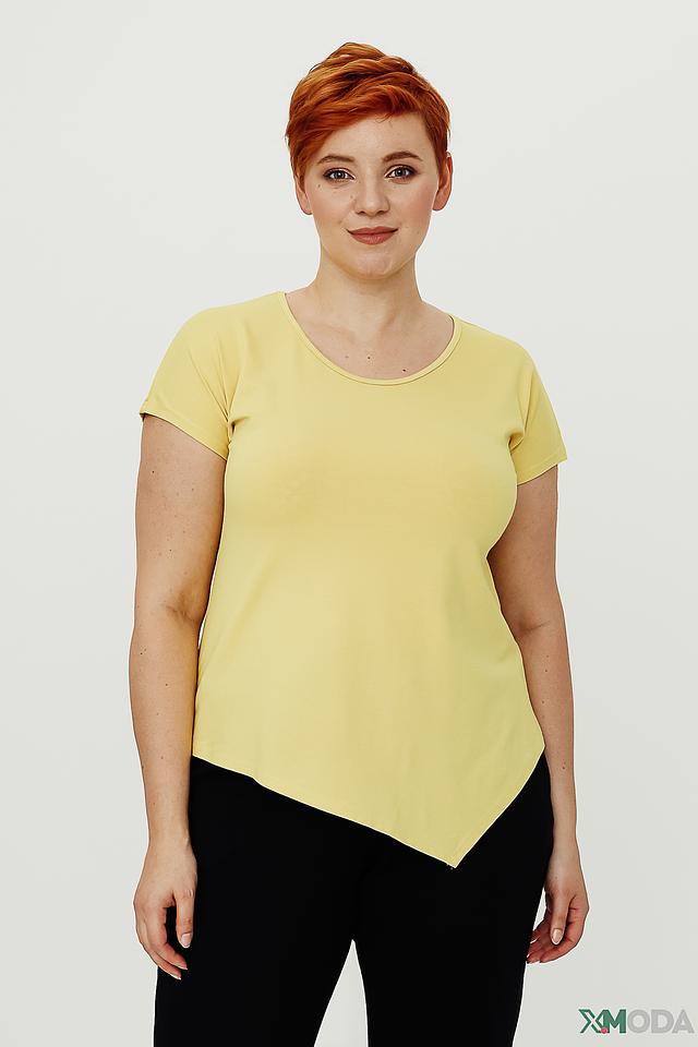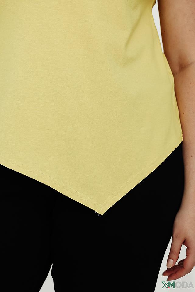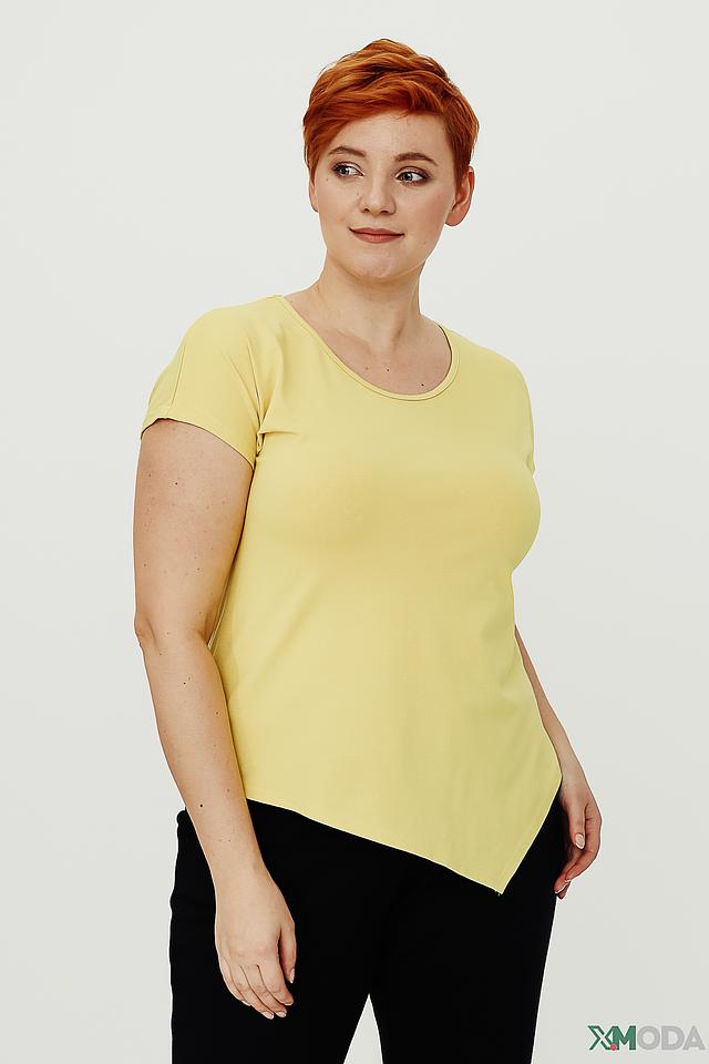 Жёлтая блуза от Doris Streich с асимметричным низом и короткими рукавами. Изготовлена из мягкой вискозы с добавлением эластана для комфорта и хорошей посадки. Состав: вискоза 96%, эластан 4%