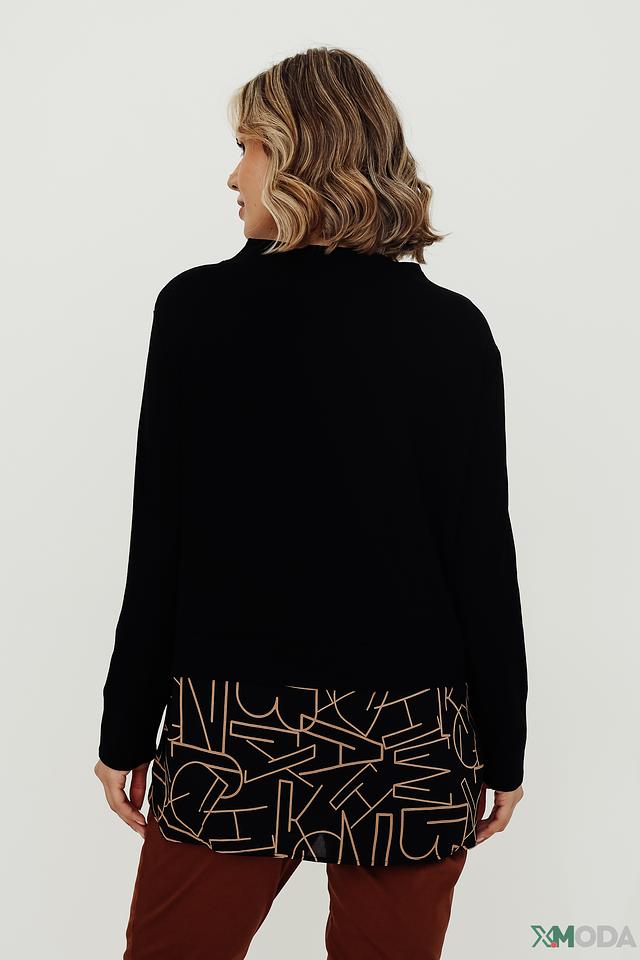 Чёрная блуза от Doris Streich с оригинальным белым принтом на подоле. Модель выполнена из мягкой вискозы, обеспечивающей комфорт в носке. Стильное сочетание лаконичного верха и декоративного низа. Состав: вискоза 100%