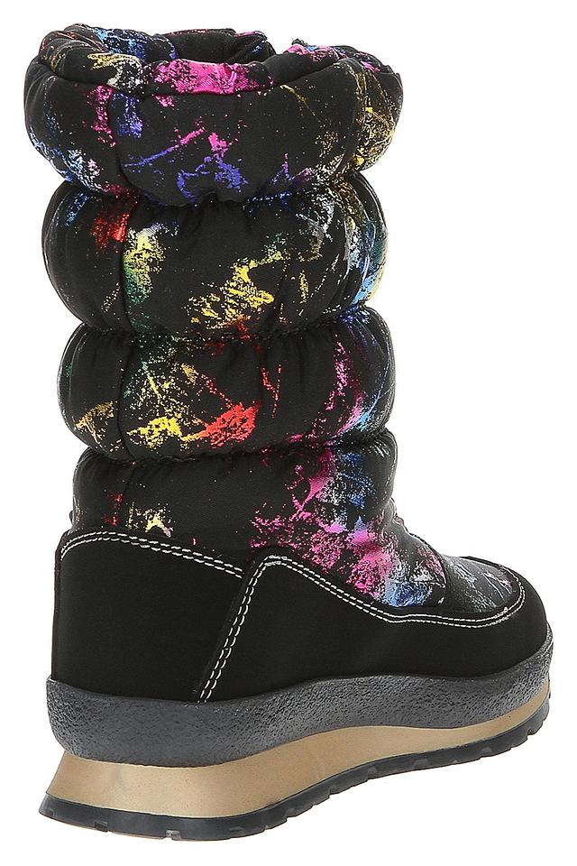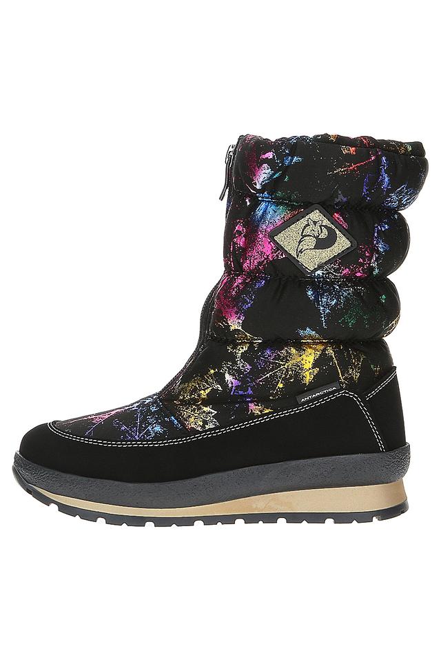 Представляем вашему вниманию тёплые и комфортные угги от бренда ANTARCTICA. Эта модель выполнена в чёрном цвете и украшена ярким, красочным принтом, который делает её уникальной и привлекательной.
