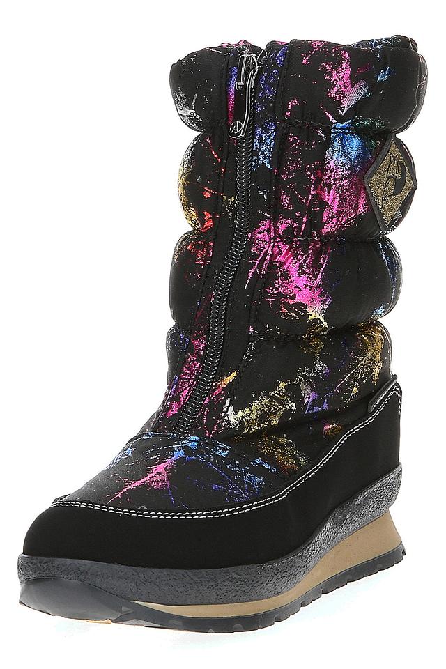 Женские угги ANTARCTICA чёрного цвета с ярким разноцветным принтом – стильная и тёплая обувь для зимнего сезона. Модель выполнена из полиэстера и оснащена удобной молнией для лёгкого надевания. Состав: полиэстер 100%, Состав_подошва ТЭП (термоэластопласт) 100%, Состав_подкладка шерсть 85%, Состав_подкладка полиэстер 15%