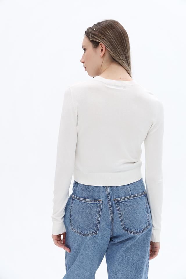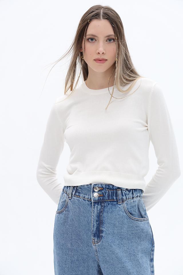 Модель имеет прямой крой и длину до талии, что делает ее универсальной для создания различных образов. Круглый вырез горловины и длинные рукава обеспечивают комфорт и тепло в прохладную погоду.
