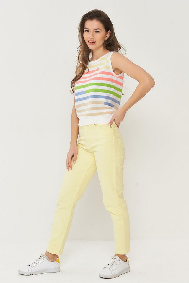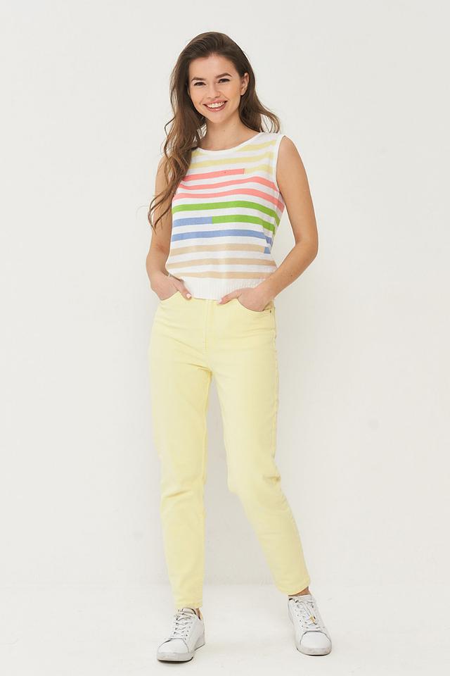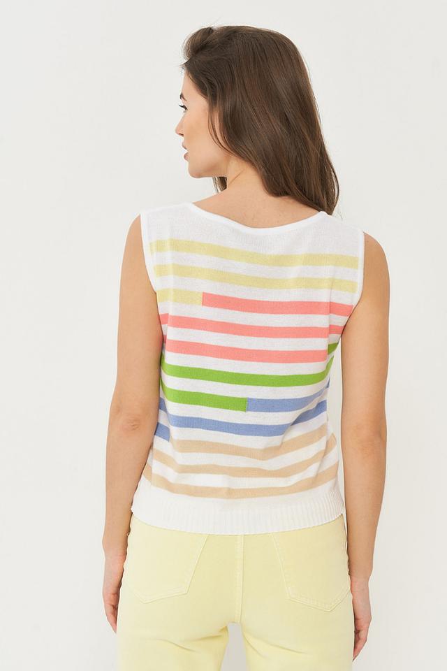Женский джемпер BE YOU белого цвета с ярким полосатым узором станет отличным дополнением к летнему гардеробу. Модель без рукавов выполнена из мягкого трикотажа, обеспечивающего комфорт в жаркую погоду. Состав: