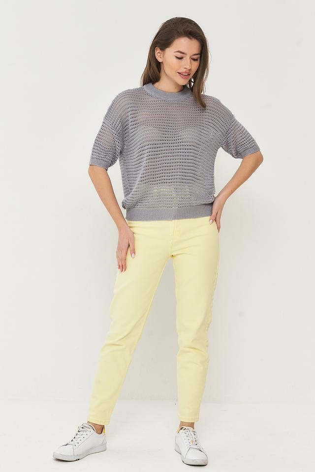 Модель имеет короткий рукав и округлый вырез горловины. Свободный крой джемпера не сковывает движения и позволяет создать расслабленный повседневный образ. Этот джемпер идеально сочетается с брюками, юбками и джинсами, позволяя создавать разнообразные стильные комплекты.