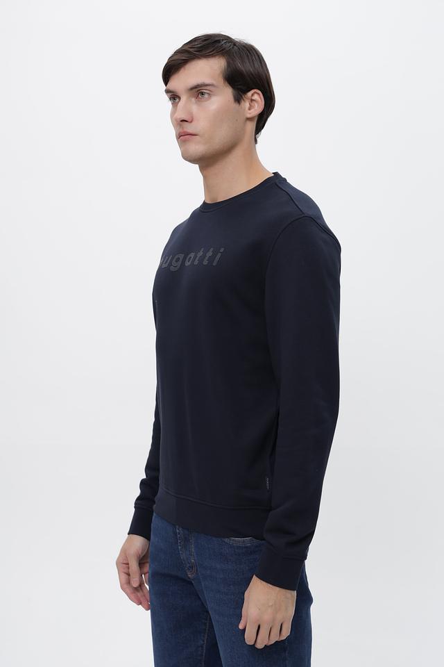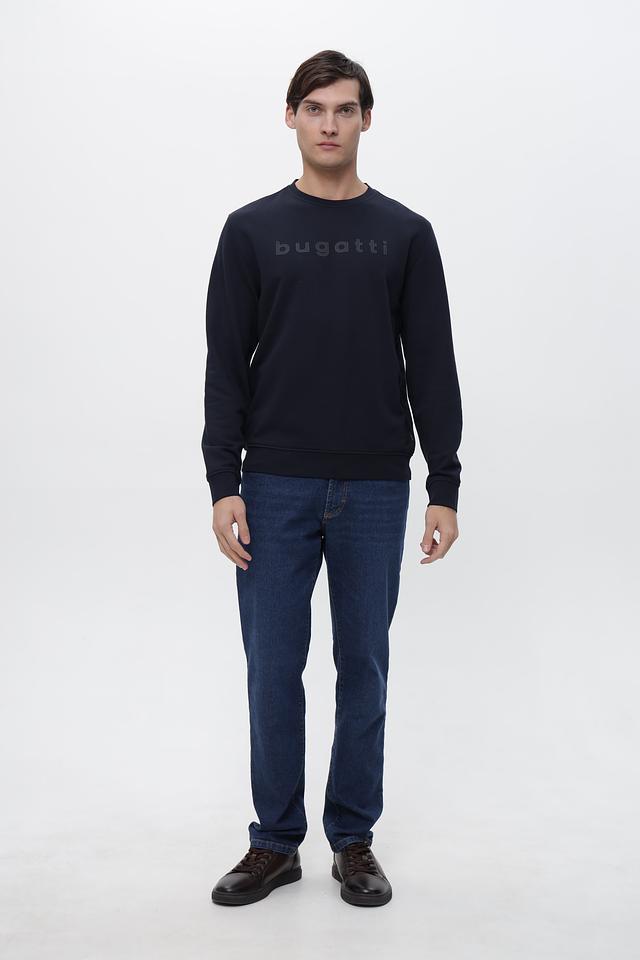 Мужской джемпер Bugatti тёмно-синего цвета с логотипом на груди. Изготовлен из мягкого хлопка с добавлением полиэстера для комфорта и долговечности. Состав: хлопок 87%, полиэстер 13%