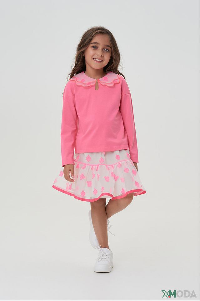 Розовый лонгслив Choupette для девочки с воротником-оборочкой. Удобный крой и мягкий хлопок обеспечат комфорт в течение дня. Прекрасно сочетается с юбками и брюками. Состав: хлопок 90%, полиуретан 10%