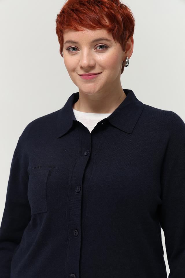 Тёмно-синяя рубашка Barbara от Lebek – стильная и комфортная модель с длинным рукавом и удобной застёжкой на пуговицы. Изготовлена из мягкой ткани с добавлением шерсти, что обеспечивает дополнительное тепло и уют. Состав: полиэстер 54%, полиамид 20%, полиакрил 20%, шерсть 6%