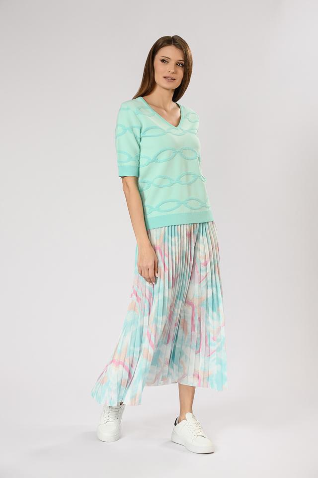 Женский джемпер Leo & Ugo мятного цвета с оригинальным цепным рисунком. Модель выполнена из мягкой вискозы с добавлением нейлона, что обеспечивает комфорт и приятные тактильные ощущения. Идеально дополнит повседневный гардероб. Состав: вискоза 72%, нейлон 28%