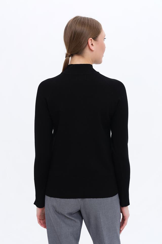 Состав ткани – 72% вискоза и 28% нейлон. Вискоза обеспечивает мягкость и комфорт, а нейлон добавляет прочности и эластичности. Джемпер приятен к телу и не сковывает движений.