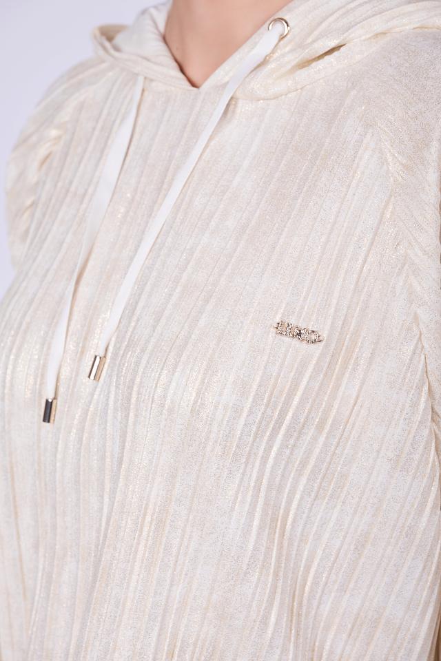 Бежевый джемпер Liu-Jo с капюшоном и длинными рукавами выполнен из текстурированного трикотажа. Модель имеет свободный крой и удобную посадку, идеально подходит для создания повседневных образов. Состав: полиэстер 97%, эластан 3%