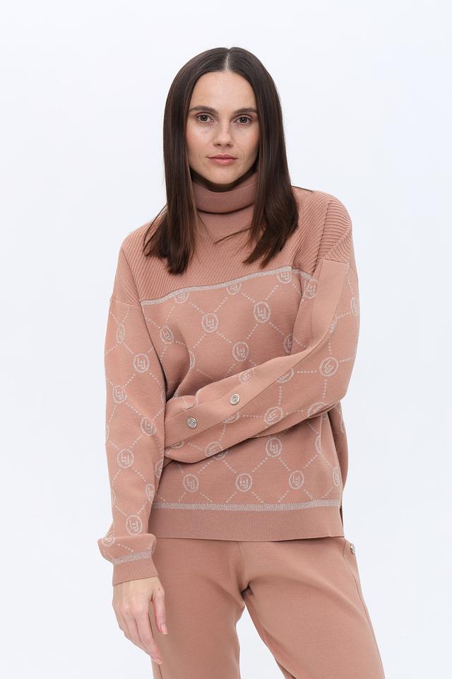 Женский джемпер Liu-Jo бежевого цвета с оригинальным узором в клетку и высоким горлом. Модель выполнена из мягкого трикотажа с добавлением вискозы, полиэстера и полиамида, что обеспечивает комфорт и удобство в носке. Состав: вискоза 53%, полиэстер 32%, полиамид 15%
