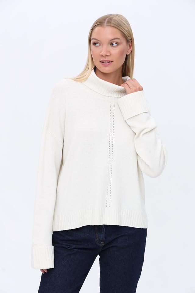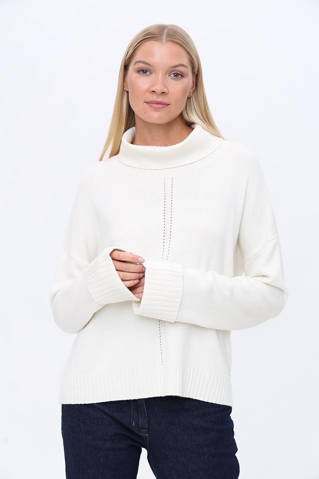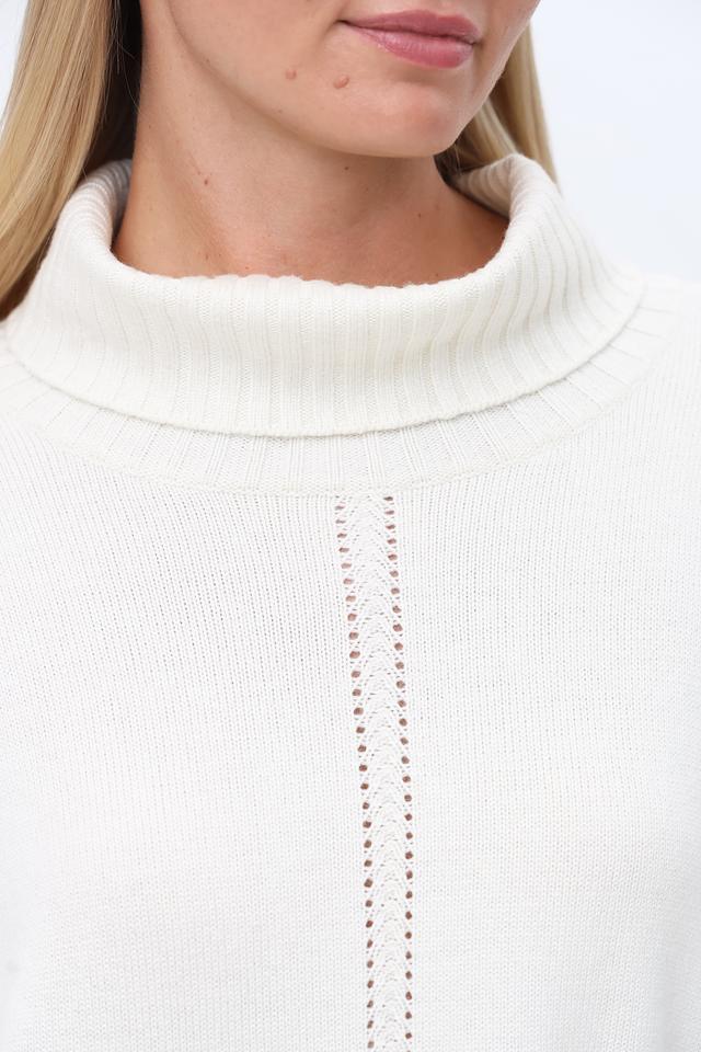Кремовый джемпер Penny Black с высоким горлом и ажурной вставкой. Изготовлен из мягкой смеси шерсти, вискозы, нейлона и кашемира, обеспечивающей комфорт и тепло. Стильный и универсальный выбор для создания элегантных образов. Состав: нейлон 35%, вискоза 31%, шерсть 30%, кашемир 4%