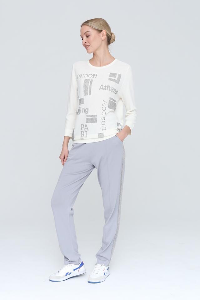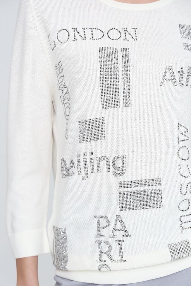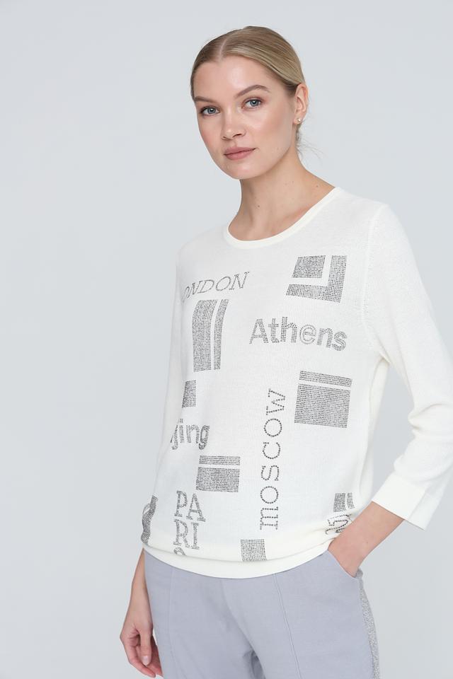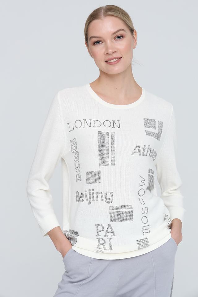 Этот джемпер от Pezzo станет ярким акцентом в вашем гардеробе. Выполнен в белом цвете и украшен стильным принтом с названиями городов, выполненным в сером цвете с серебристыми элементами.