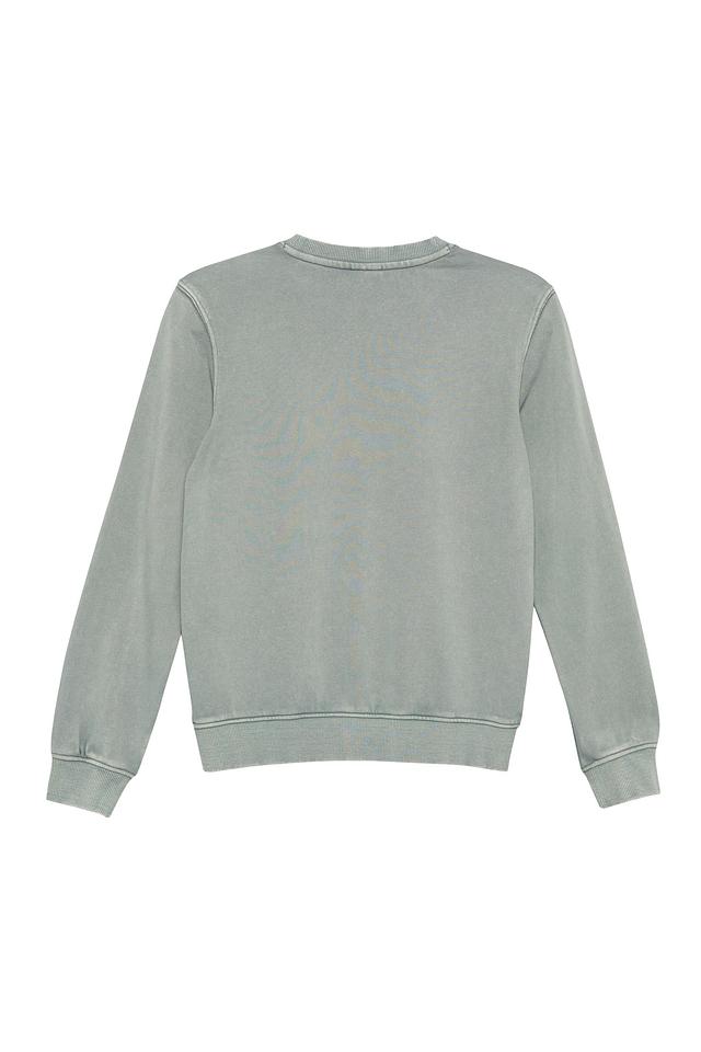 Модель имеет круглый вырез горловины, длинные рукава и прямой крой, обеспечивающий свободу движений. Главной особенностью джемпера является оригинальный принт с надписью и изображением, который придаёт ему индивидуальность и современный вид.