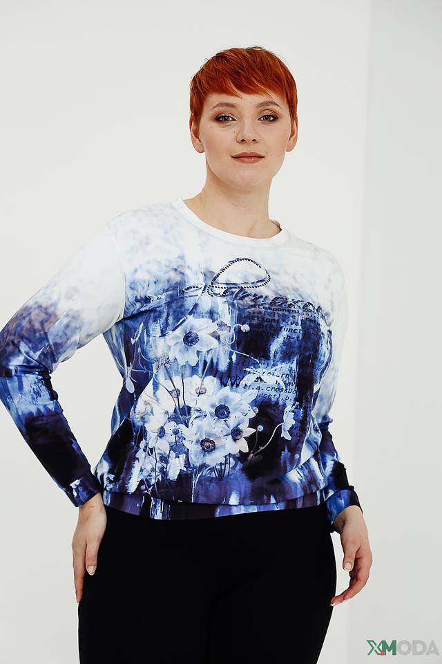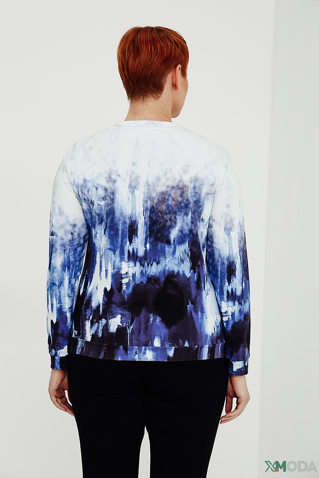 Основной цвет джемпера – синий, но благодаря эффектному принту в виде цветочного мотива и технике tie-dye, он выглядит очень свежо и оригинально. Принт выполнен в бело-синих тонах, создавая яркий и запоминающийся образ.